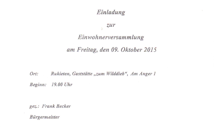 So auch heute, denn es wird informiert und gefeiert werden. Die Termine zu den Feierlichkeiten findet ihr auf den folgenden Seiten, darunter der gemeinsame Umtrunk unserer Feierwehr, Tini's privatem Dorfbums und am kommenden Freitag. den 09. Oktober 15 trifft sich im Wilddieb zu Rukieten, jeder der sich für alle Belange in unserer Gemeinde interessiert und Sich einsetzen möchte, zur Bürgerversammlung.